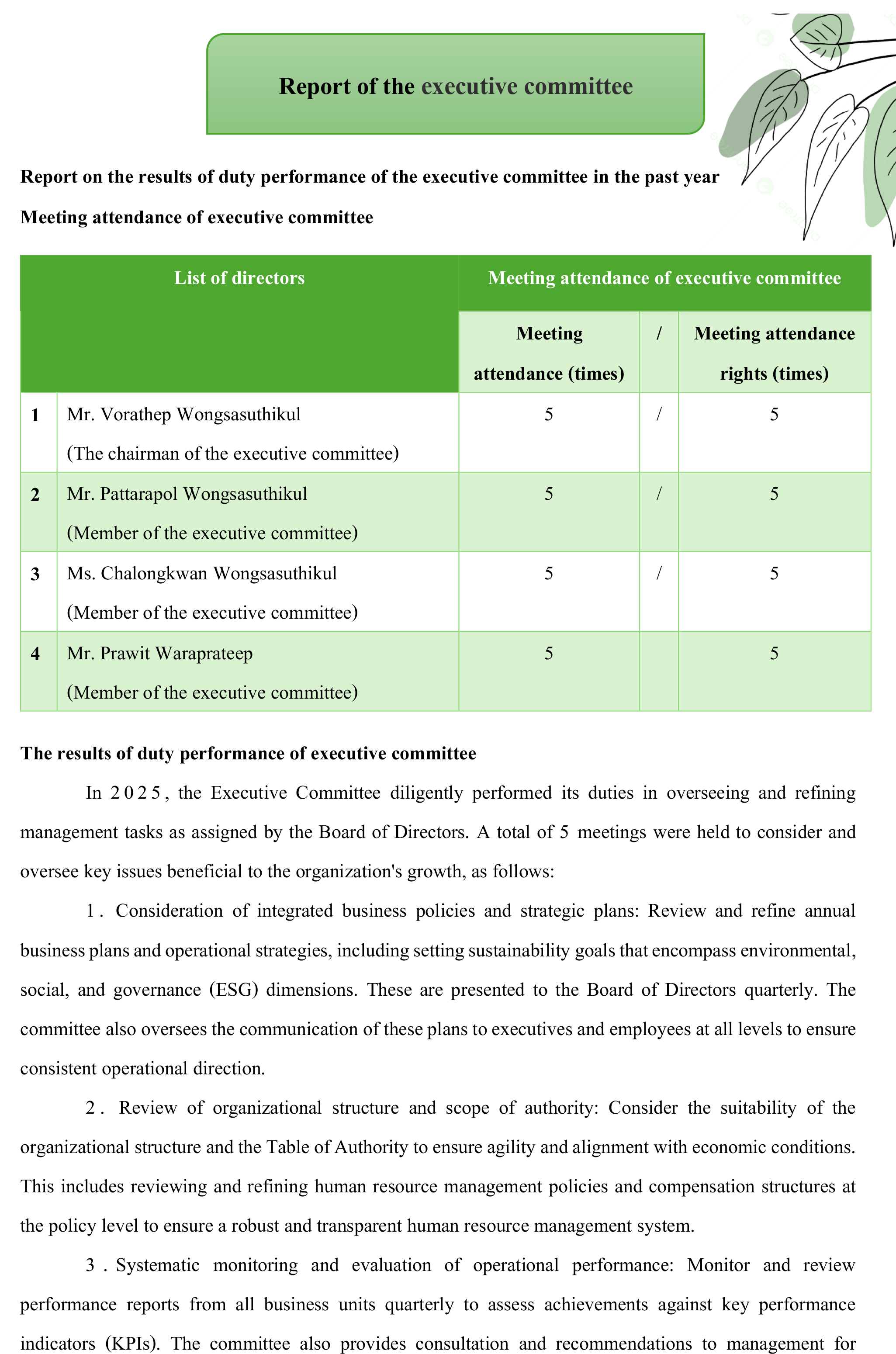 1. Focus on ESG: (Environmental, Social, and Governance), BCG or Bio-Circular-Green Economy throughout the organization to enhance organizational sustainability.