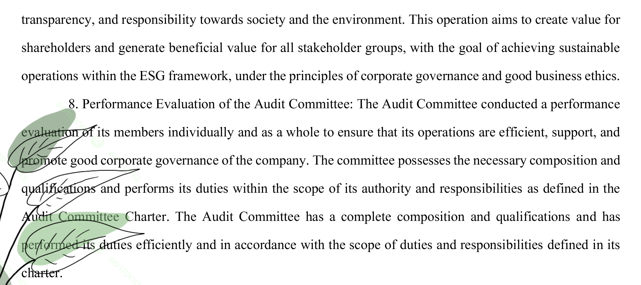 - To ensure the active involvement of all directors in promoting an ethical organizational culture and sound corporate governance.